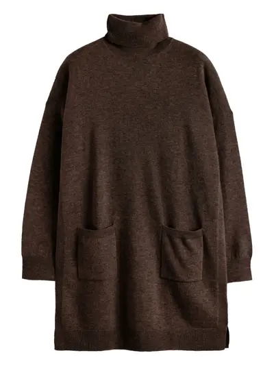 brown roll neck long sleeves two patch pockets