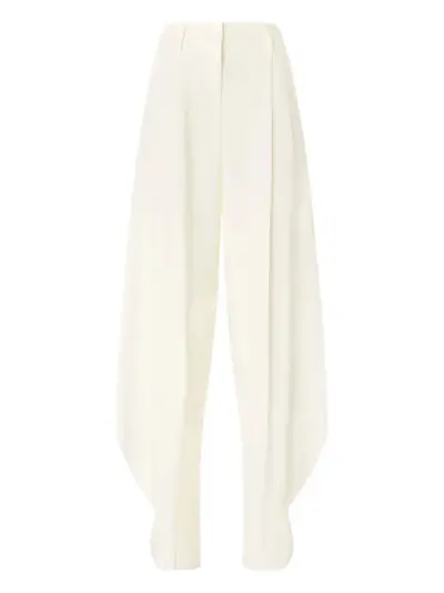 off-white pleated front balloon leg high waist straight hem centre-front fastening