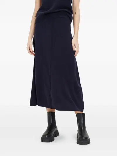 navy blue A-line shape centre seam detail ribbed waistband straight hemline