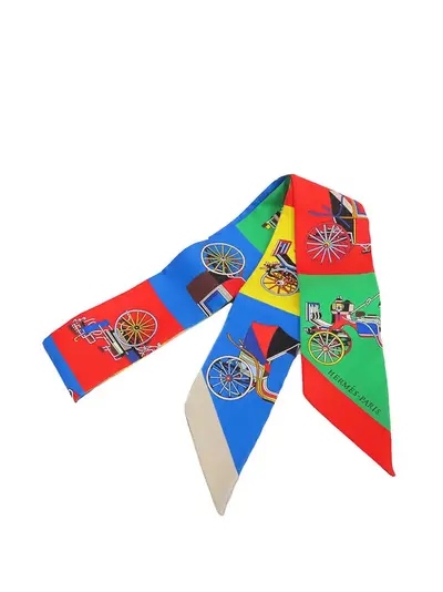 This twilly scarf features Les Voitures Exquises print on 100% silk. Blue. Inclusions: box. Condition: UNWORN. This item is previously owned but remains unworn and in its original condition. However, it does not come with its original tags. Due to the exclusivity of this item and its limited availability, processing and delivery might take longer than usual. Please refer to the photos on this product page for a detailed view of the item, including any damages declared.
