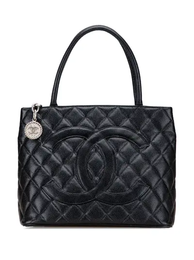 quilted caviar leather body rolled leather handles top zip closure exterior back slip pocket interior zip and slip pockets black Serial Number: 5654909 This item has no inclusions. Condition: GOOD. This previously owned and used item is in good condition with minimal signs of use. This may include fading of material or plating and scratches. Declared Damages: Handle/Strap Feature(s) Minor Loose Stitching. Please refer to the photos on this product page for a detailed view of the item, including any damages declared.