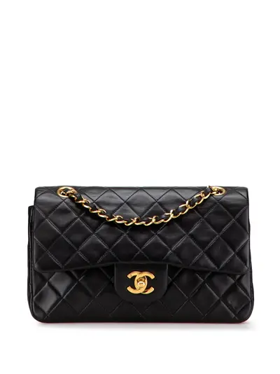 quilted lambskin body leather woven chain shoulder straps double front flaps with interlocking Cs twist lock closure exterior back slip pocket interior zip and slip pockets black Serial Number: 2870831 Inclusions: authenticity card. Condition: GOOD. This previously owned and used item is in good condition with minimal signs of use. This may include fading of material or plating and scratches. Please refer to the photos on this product page for a detailed view of the item, including any damages declared.