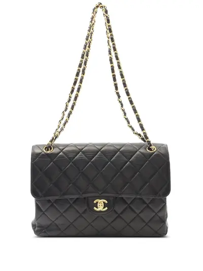 quilted lambskin leather body leather-woven chain straps front and back flaps with CC turnlock closure interior zip and slip pockets black Serial Number: 4025867 This item has no inclusions. Condition: GOOD. This previously owned and used item is in good condition with minimal signs of use. This may include fading of material or plating and scratches. Due to the exclusivity of this item and its limited availability, processing and delivery might take longer than usual. Please refer to the photos on this product page for a detailed view of the item, including any damages declared.