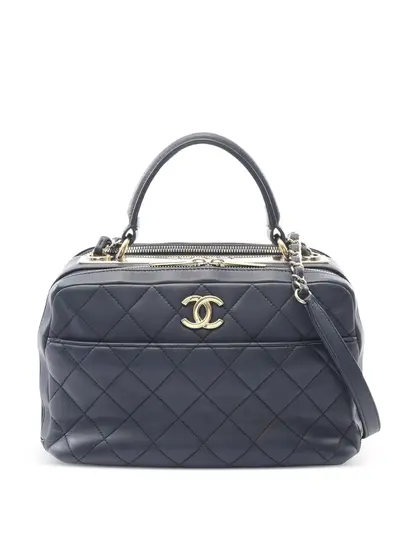 quilted lambskin leather body rolled leather top handle leather woven chain strap with leather guard dual top zip closures exterior front slip pocket interior zip and slip pockets blue Serial Number: 24734474 This item has no inclusions. Condition: EXCELLENT. This previously owned item is in near-perfect condition with no signs of damage or use. Due to the exclusivity of this item and its limited availability, processing and delivery might take longer than usual. Please refer to the photos on this product page for a detailed view of the item, including any damages declared.