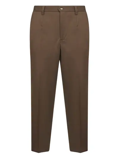 brown belt loops side pockets back buttoned welt pockets pressed creases