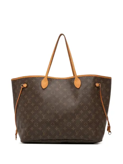 monogram canvas body with vachetta leather trim flat vachetta leather handles open top with a lobster clasp closure interior zip pocket brown Serial Number: FL4121 This item has no inclusions. Condition: GOOD. This previously owned and used item is in good condition with minimal signs of use. This may include fading of material or plating and scratches. Please refer to the photos on this product page for a detailed view of the item, including any damages declared.