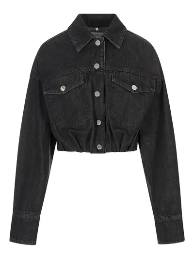 black button fastening chest pockets buttoned cuffs elasticated hem