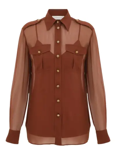 brown gold-tone button embellishment epaulettes long sleeves front button fastening chest flap pockets