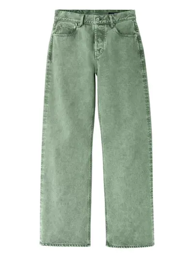sage green faded effect five-pocket design embroidered logo detail belt loops