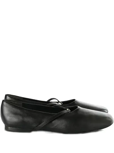 black strap detail gold-tone hardware round toe flat sole