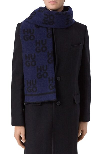 Шерстяной шарф Hugo 50524767 (синий, lpn31014696)
