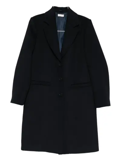 navy blue wool blend front button fastening notched lapels long sleeves wide welt pockets