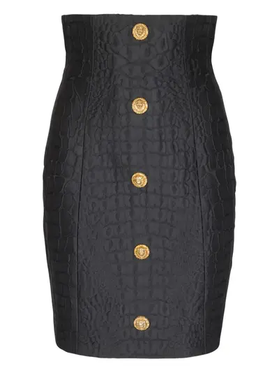 black crocodile-effect jacquard high waist gold-lion head buttons front-button fastening pencil shape