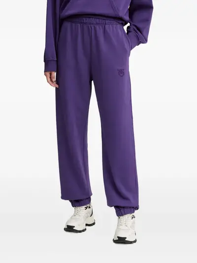 purple elasticated waistband side seam pockets elasticated cuffs tonal embroidery
