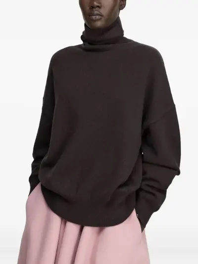 dark brown roll neck long sleeves ribbed cuffs ribbed hem