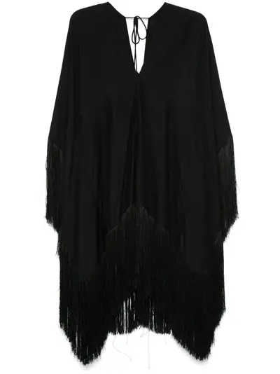 black rear tie fastening fringe detailing drop shoulder