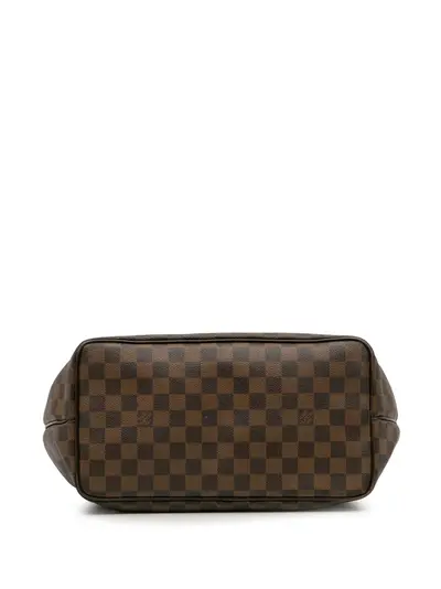 damier ebene canvas body with leather trim flat leather straps top zip closure interior slip pockets brown Serial Number: DR2182 This item has no inclusions. Condition: GOOD. This previously owned and used item is in good condition with minimal signs of use. This may include fading of material or plating and scratches. Declared Damages: Corners Feature(s) Moderate Wear. Please refer to the photos on this product page for a detailed view of the item, including any damages declared.