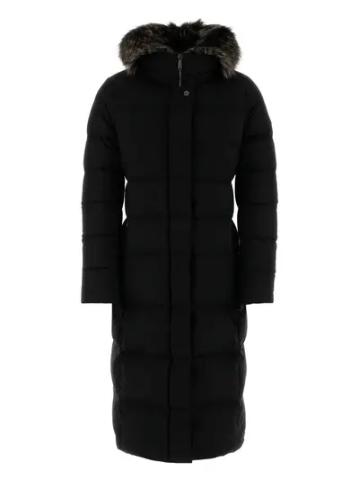 black faux-fur trim down padding button fastening long sleeves tonal design