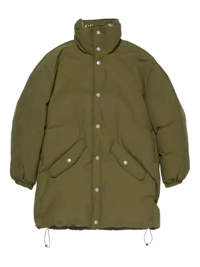 khaki green high neck snap button fastening welt-flap pockets back-neck logo print
