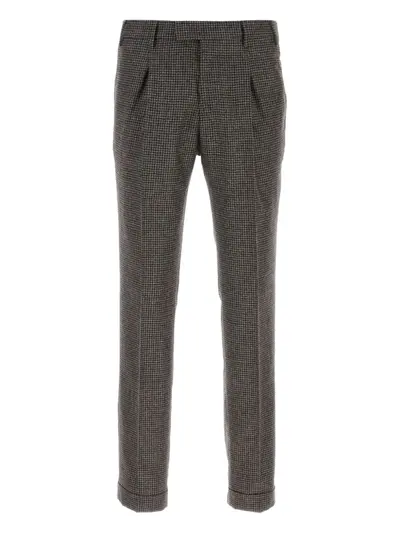 grey check pattern turn-up hem pleats belt loops rear pockets