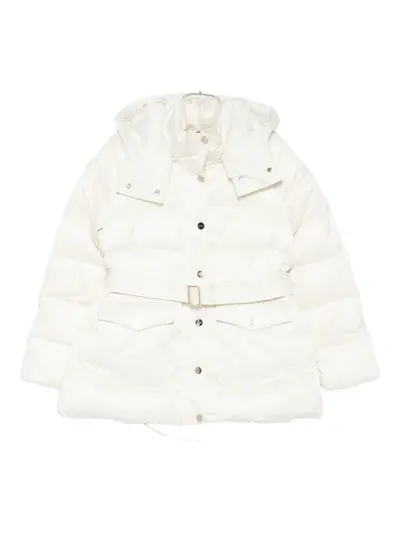 white adjustable waist belt classic hood front flap pockets front press-stud fastening quilted design