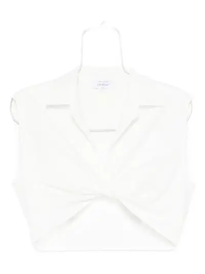 white sleeveless twisted front cropped spread collar