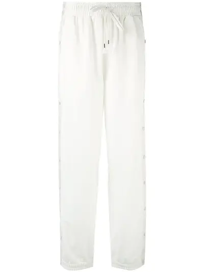 Ivory and pale pink side button track pants from Fenty X Puma.