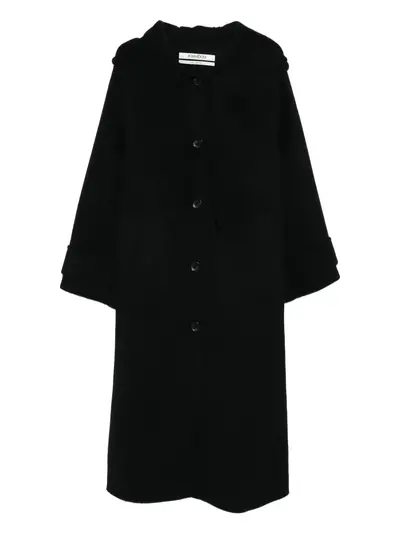 black two side welt pockets slouchy hood buttoned cuffs central rear vent