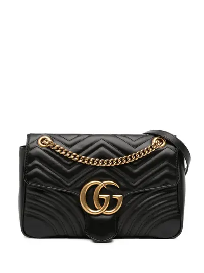 quilted leather body curb chain strap with a leather guard front flap with a push lock closure interior zip and slip pockets black Serial Number: 443496 525040 This item has no inclusions. Condition: EXCELLENT. This previously owned item is in near-perfect condition with no signs of damage or use. Please refer to the photos on this product page for a detailed view of the item, including any damages declared.