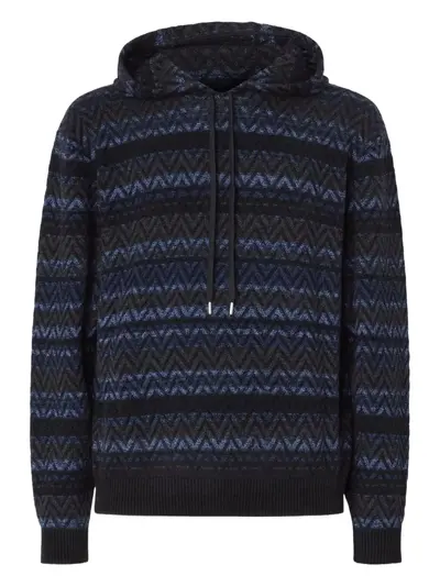 blue/black patterned drawstring hood long sleeves ribbed hem and cuffs The item you receive may differ slightly from the item photographed. This is due to the artisanal nature with which all Missoni products are constructed.