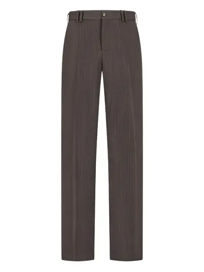 brown pinstripe belt loops button fastening rear welt pocket rear flap pocket