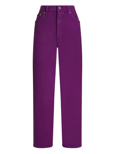 amaranth purple front button fastening classic five pockets belt loops tapered leg