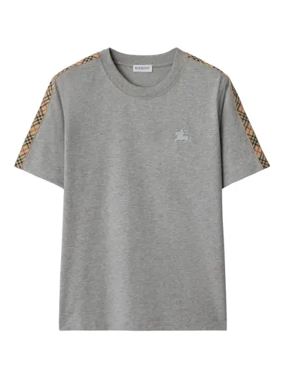 grey check-pattern taping trim embroidered Equestrian Knight motif short sleeves cotton