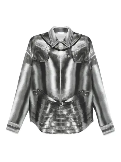 grey cotton all-over armour print front button fastening long sleeves buttoned cuffs