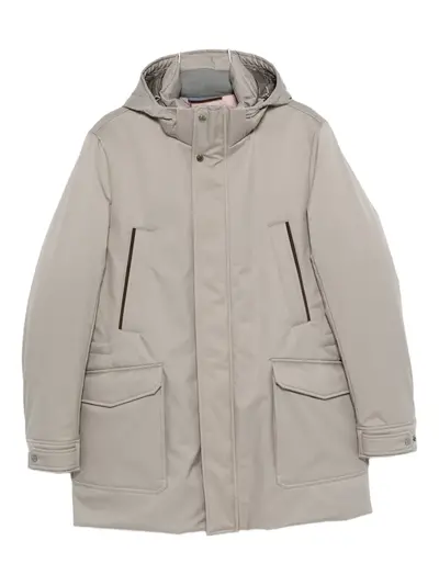 grey front concealed fastening classic hood long sleeves side flap pockets