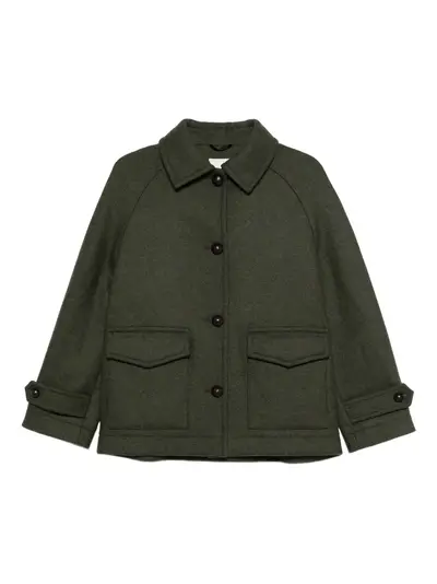 green front button fastening front flap pockets buttoned cuffs classic collar