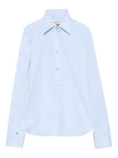 light blue button fastening long sleeves buttoned cuffs pointed collar curved hem