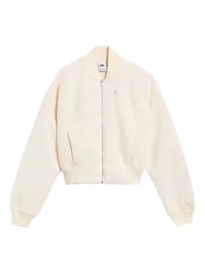 white zip fastening ribbed hem ribbed cuffs chest zip pocket baseball neck