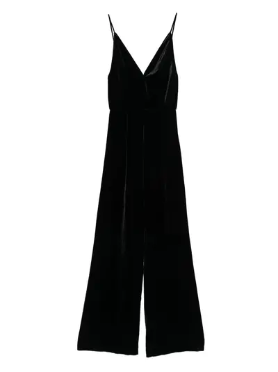 black v-neck spaghetti straps wide leg sleeveless concealed zip fastening