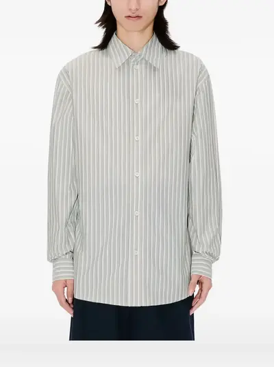 pale khaki green striped button fastening long sleeves buttoned cuffs classic collar