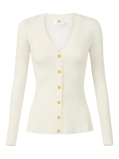 milk ribbed knit V-neck long sleeves gold-tone buttons logo detail