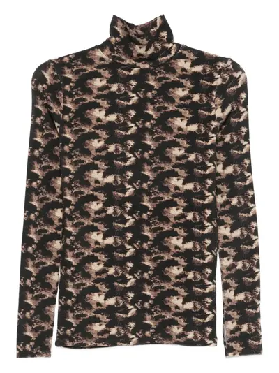 brown all-over abstract pattern long sleeves roll neck straight hem