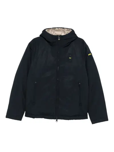 blue classic hood front zip fastening side zip-fastening pockets long sleeves logo-patch at the sleeve