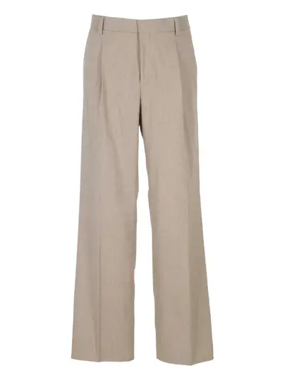 brown pleated belt loops side seam pockets rear welt pockets concealed fly fastening