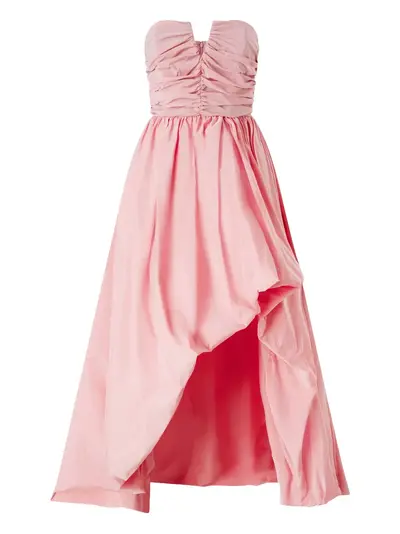 pink strapless ruched detailing flared hem concealed zip fastening
