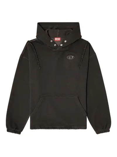 black frayed detail drawstring hood logo plaque front pouch pocket