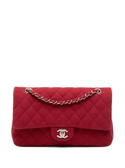quilted jersey body cotton-woven chain shoulder straps double front flaps with CC turn-lock closure exterior back slip pocket interior zip and slip pockets red Serial Number: 24681133 This item has no inclusions. Condition: GOOD. This previously owned and used item is in good condition with minimal signs of use. This may include fading of material or plating and scratches. Declared Damages: Exterior Side Feature(s) Minor Rip. Exterior Bottom Feature(s) Moderate Wear. Exterior Back Feature(s) Minor Rip. Please refer to the photos on this product page for a detailed view of the item, including any damages declared.