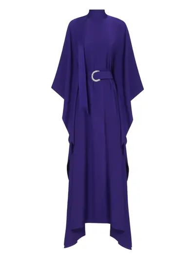 violet crystal embellished belt high neck draped panels wide sleeves