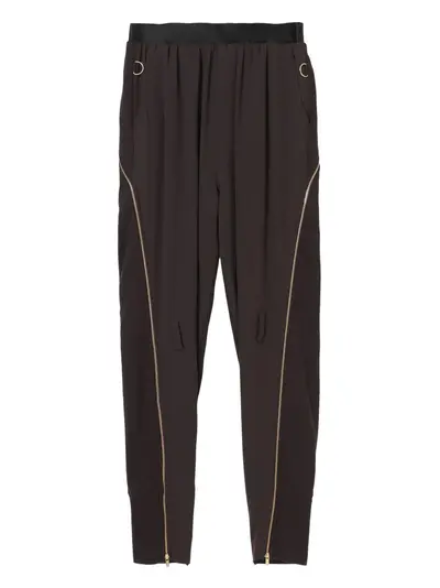 brown zip detailing elasticated waistband side panels ankle zips tapered leg