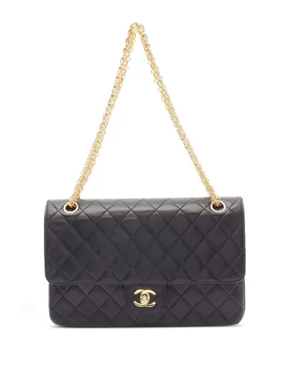 quilted lambskin leather body chain-link chain straps double front flaps with CC turn-lock closure exterior back slip pocket interior zip and slip pockets black Serial Number: 0587742 This item has no inclusions. Condition: GOOD. This previously owned and used item is in good condition with minimal signs of use. This may include fading of material or plating and scratches. Due to the exclusivity of this item and its limited availability, processing and delivery might take longer than usual. Please refer to the photos on this product page for a detailed view of the item, including any damages declared.